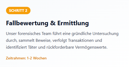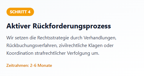 Jeder Fall ist einzigartig. Wir entwickeln maßgeschneiderte rechtliche Ansätze basierend auf den spezifischen Umständen Ihres Betrugs, der beteiligten Jurisdiktion und den verfügbaren Beweisen, um Ihre Chancen auf Rückforderung zu maximieren.